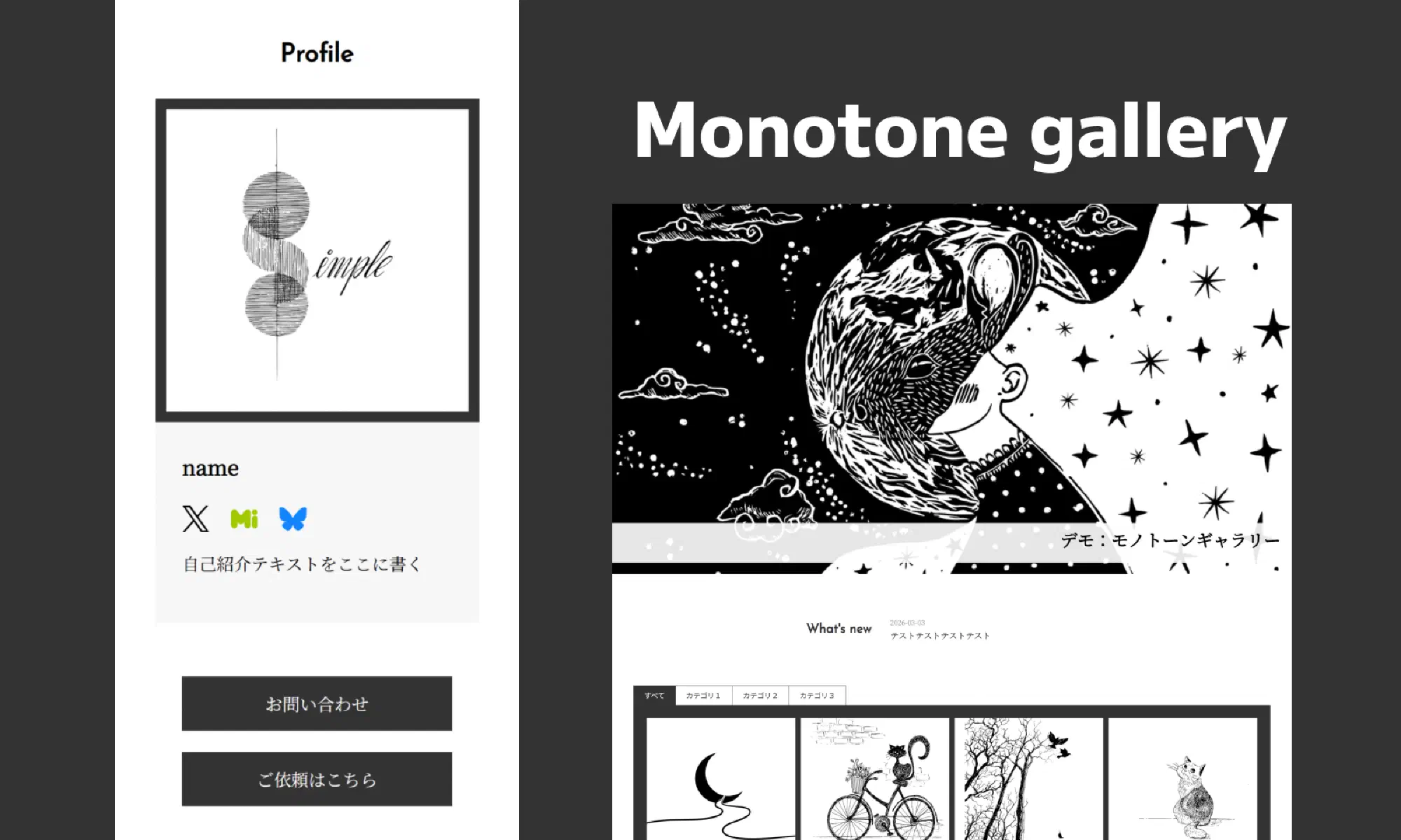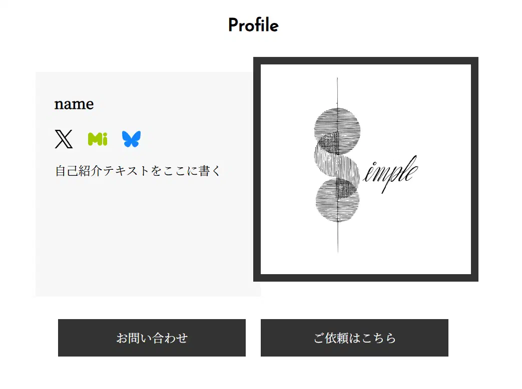 任意の画像とプロフィール、SNSへのリンクやテキストボタンリンクなどを設置できます。