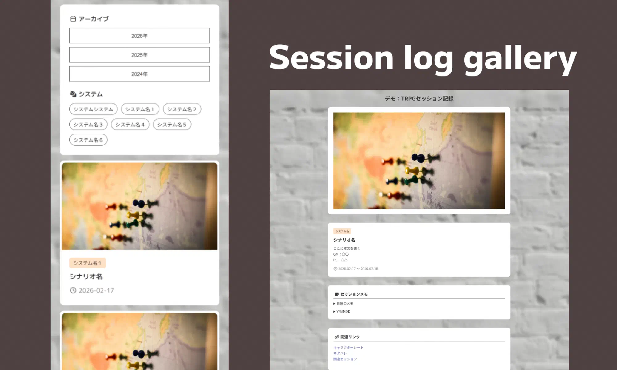 TRPGのセッションの履歴を記録できるテンプレートです。